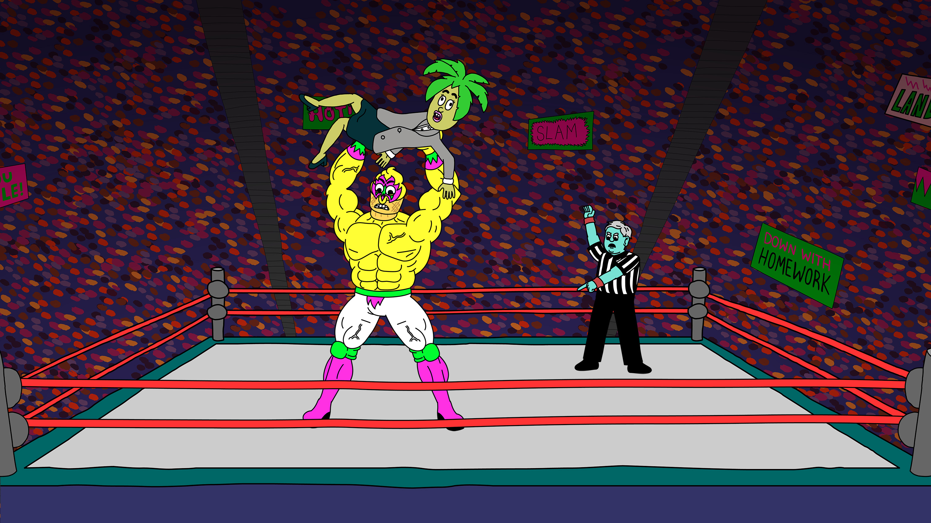 "Bash Master / All's Well" – A wrestler makes a career change. A chin is large. A woman claps her hooks. A bowler doesn’t know what she's "pin" for. An elf and a princess weigh their options. A tricky wishing well ruins a laptop.