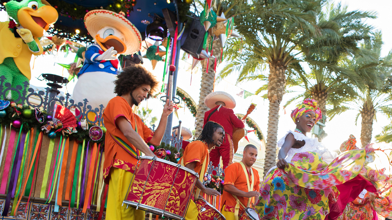 - Disney ¡Viva Navidad! – Enjoy holiday foods, crafts, Disney Character greetings and Latin American bands. The Three Caballeros host a fun street party featuring folklórico and samba dancers, live musicians and Mickey and Minnie in their fiesta best!