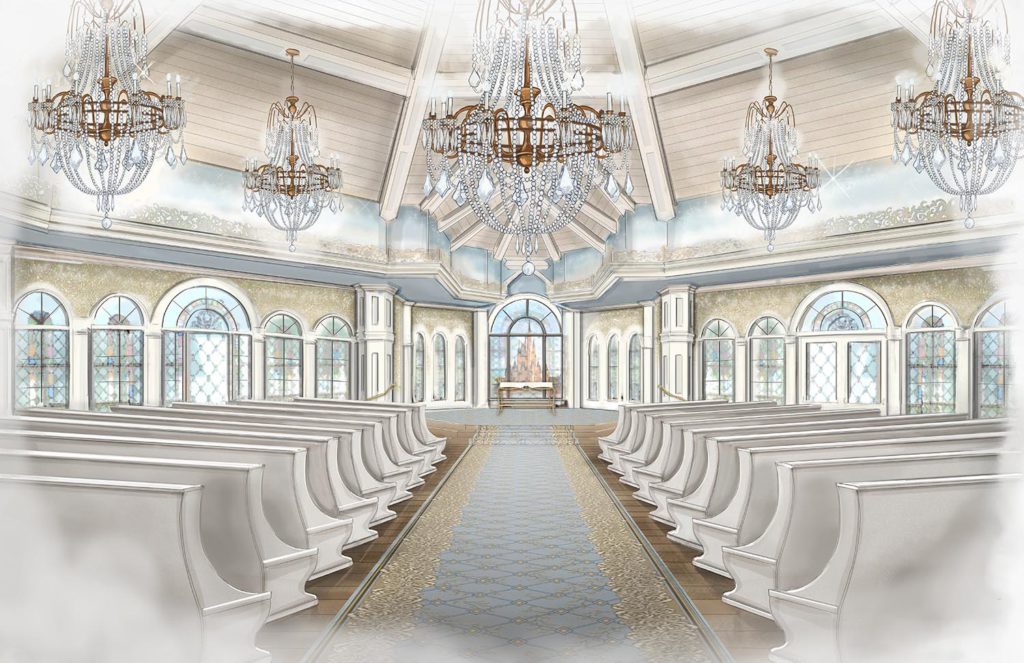 In August, Disney announced the pavilion would be getting a major upgrade.Disney’s Fairytale Wedding and Honeymoons have unveiled a new look for Disney’s Wedding Pavilion. The new decor is described as featuring an elegant, neutral color palette and shimmering crystal chandeliers. Brand new furnishings, wall coverings, and carpeting round out the enhancements and bring new life into the interior.