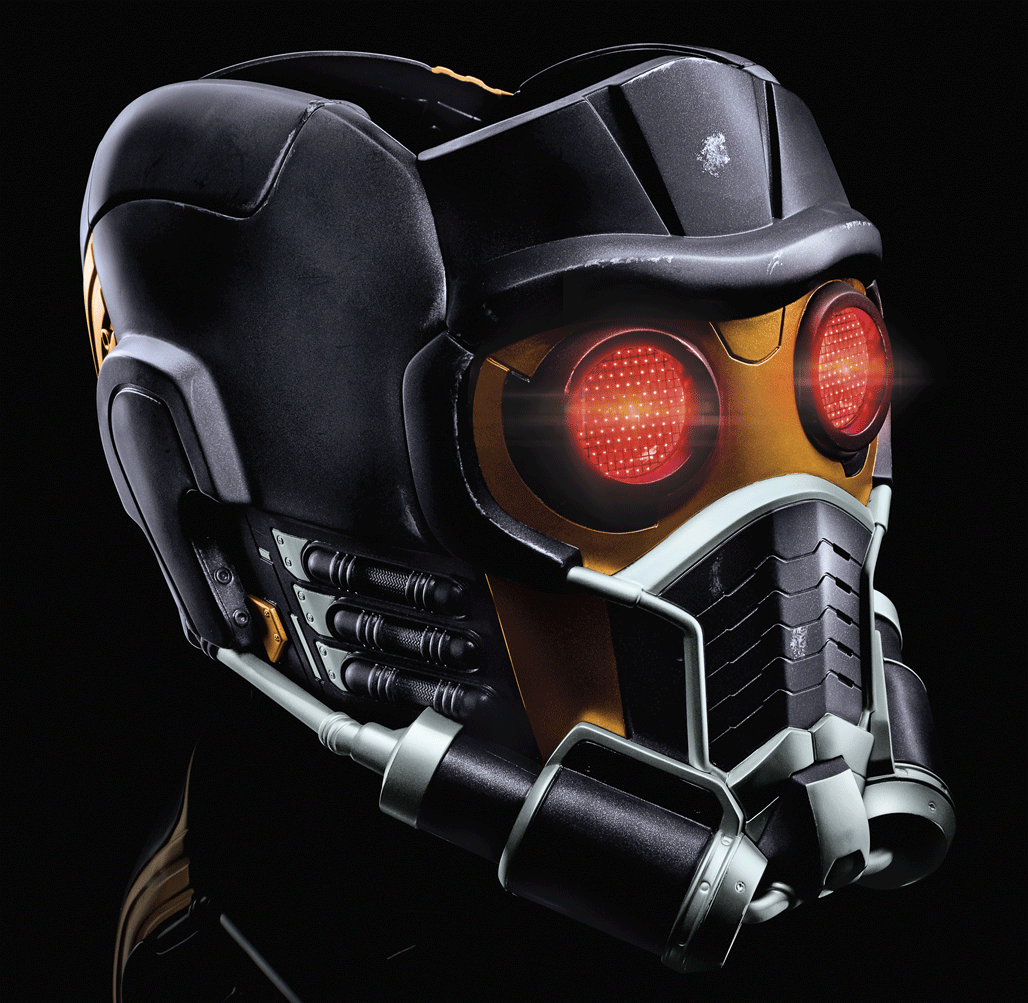 Channel the legendary outlaw Star-Lord with this highly detailed and 1:1 full scale electronic helmet! Features premium movie-inspired sculpting and deco, as well as electronic sound effects and light up eyes. Fully adjustable to fit most heads. Requires 3 AA batteries, not included. Available at most major retailers and on HasbroToyShop.com.