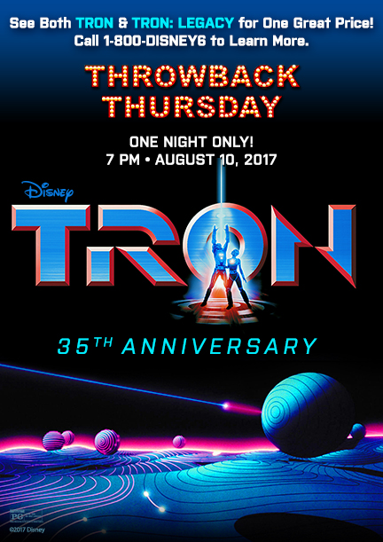 A very special Throwback Thursday event is coming to the big screen at Hollywood’s legendary El Capitan Theatre for its first ever Double Feature celebrating the 35th Anniversary of TRON with TRON (1982) and TRON: LEGACY (2010), both screened on one night, Thursday, August 10th, 2017.
