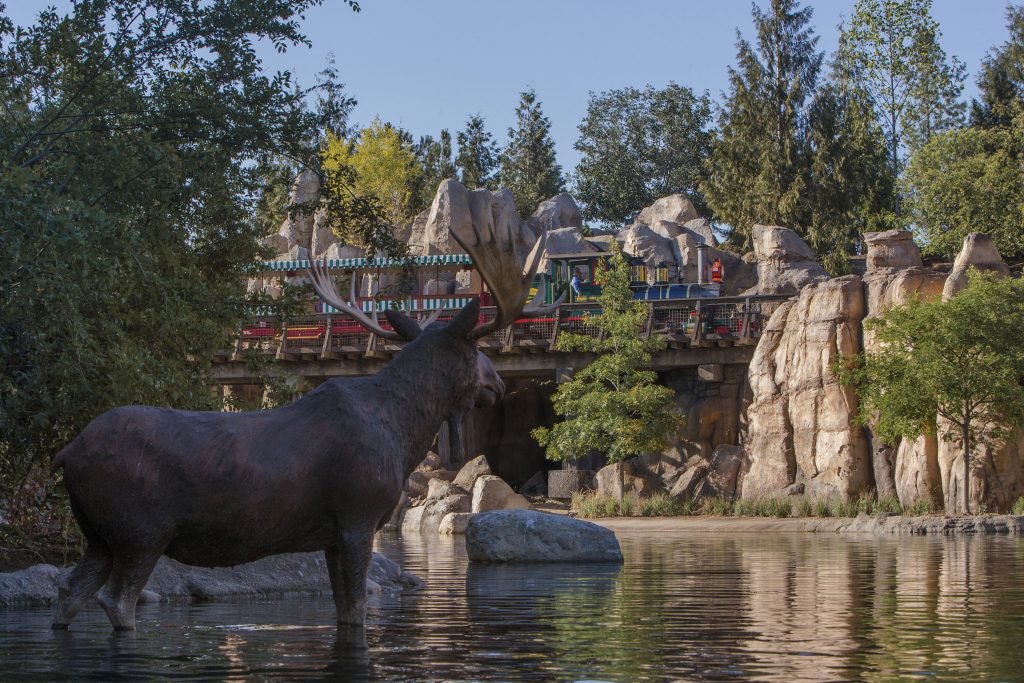 Kim Irvine, art director for the Rivers of America project, envisioned what it will be like for guests: “It’s hard to believe that right here, smack dab in the middle of bustling freeways and high-rises, you can enjoy a relaxing ride on an open-air train car and sail on a ship or canoe down a rolling river, surrounded by towering pine and oak trees with sightings of deer, elk, moose and beautiful waterfalls.”