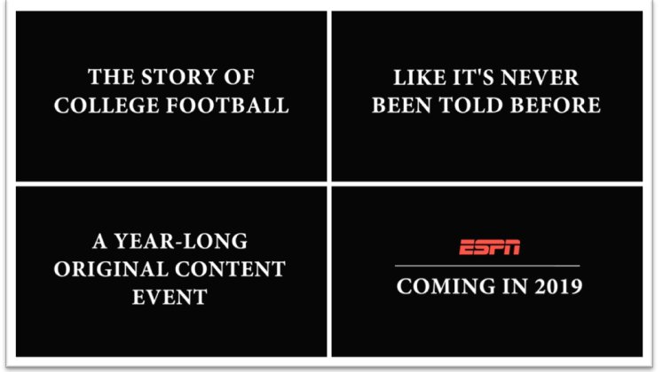 “We are extraordinarily proud to celebrate a sport that has had such a great influence on numerous generations,” says ESPN President John Skipper. “Our year-long exploration will showcase college football’s rich history, which is indelibly rooted in the fabric of American culture, and explore the current and future state of the sport. Fans can expect a comprehensive storytelling approach, presented creatively across the breadth of the ESPN Platform.”