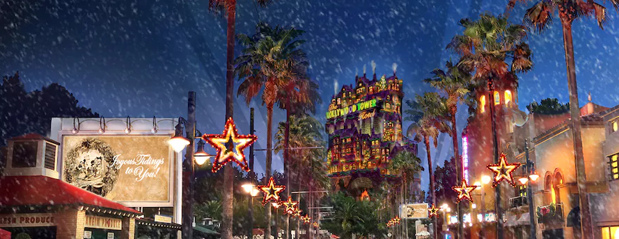 This winter, a new projection show called Sunset Seasons Greetings will make its debut at Disney's Hollywood Studios. The show is set to perform from November 9th to December 31st and will include some fun effects and surprising. According to the official description, during the show, "Billboards suddenly begin to move into motion and tell a tale, courtesy of iconic characters sharing their love for the season. All the while, the Hollywood Tower Hotel—a.k.a. The Twilight Zone Tower of Terror—magically transforms, bringing to life the characters’ stories."