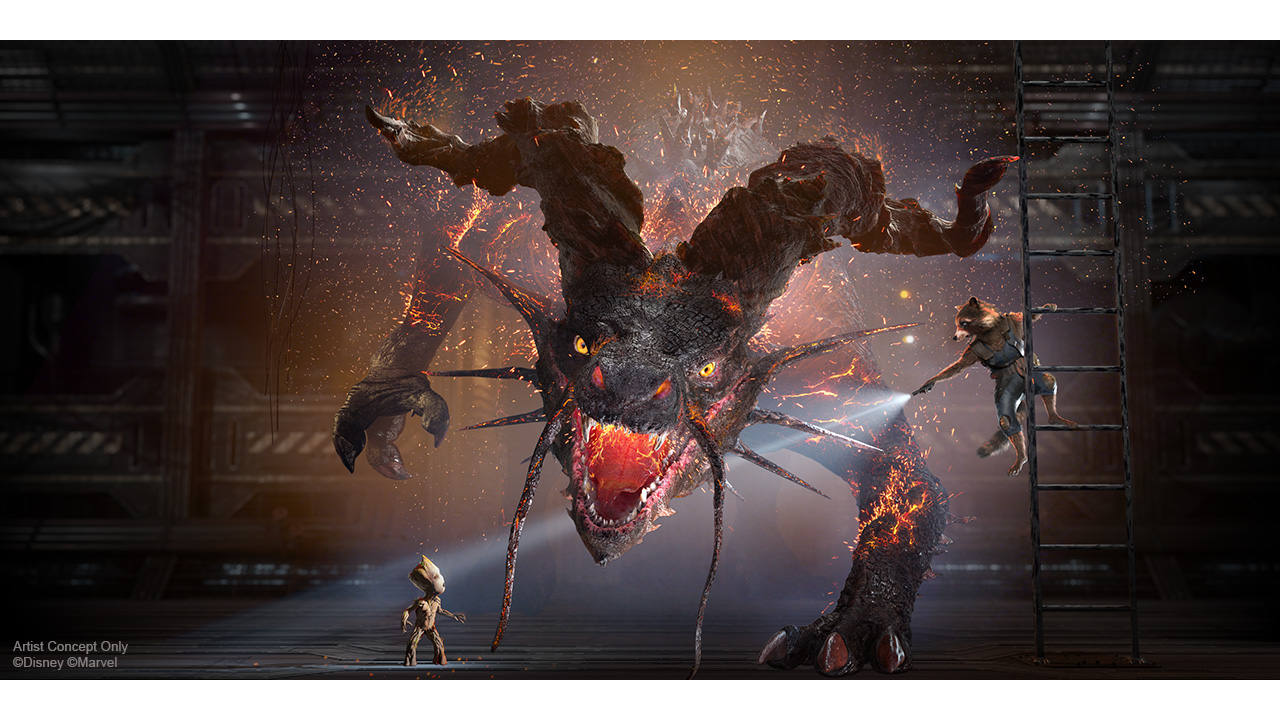 This Halloweentime, Disney California Adventure's Guardians of the Galaxy — Mission: BREAKOUT! attraction is getting a nightly overlay dubbed Monsters After Dark. Now the Disney Parks Blog has revealed that one of the monsters featured in this ride update also has a role in Marvel's upcoming film Thor: Ragnarok. As new concept art shows, Surtur’s Fire Dragon will appear in both the Marvel Theme Park Universe via Guardians and in the Marvel Cinematic Universe with Ragnarok. Of course, this makes sense as the ragtime group of Guardians will meet the God of Thunder in Avengers: Infinity War next summer.
