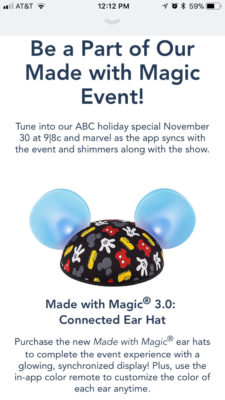 If viewers at home don’t have the special edition ear hats, the Shop Disney Parks app will allow them to enjoy a second screen experience as their mobile phone comes alive, mirroring the spectacle on-screen during select performances. The Made with Magic 3.0: Connected Ear Hat is available for $28.17 and discounts do apply. Guests that order the hat by November 20 and select ground shipping will receive the hat in time for the November 30 special.