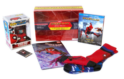 The new Spider-Man: Homecoming Limited Edition Gift Box is available beginning today exclusively at Walmart and comes loaded with an exclusive Funko Pop! “upside down” Vinyl bobble-head figure, only available through this limited retail offer. Also exclusive to this limited edition gift box is a Spider-Man Comic Covers Book called “Through the Years” featuring popular Spider-Man comic book cover art, as well as Spider-Man athletic socks, a collectible Spider-Man enamel pin, and the Spider-Man: Homecoming Blu-ray, DVD and digital combo pack.