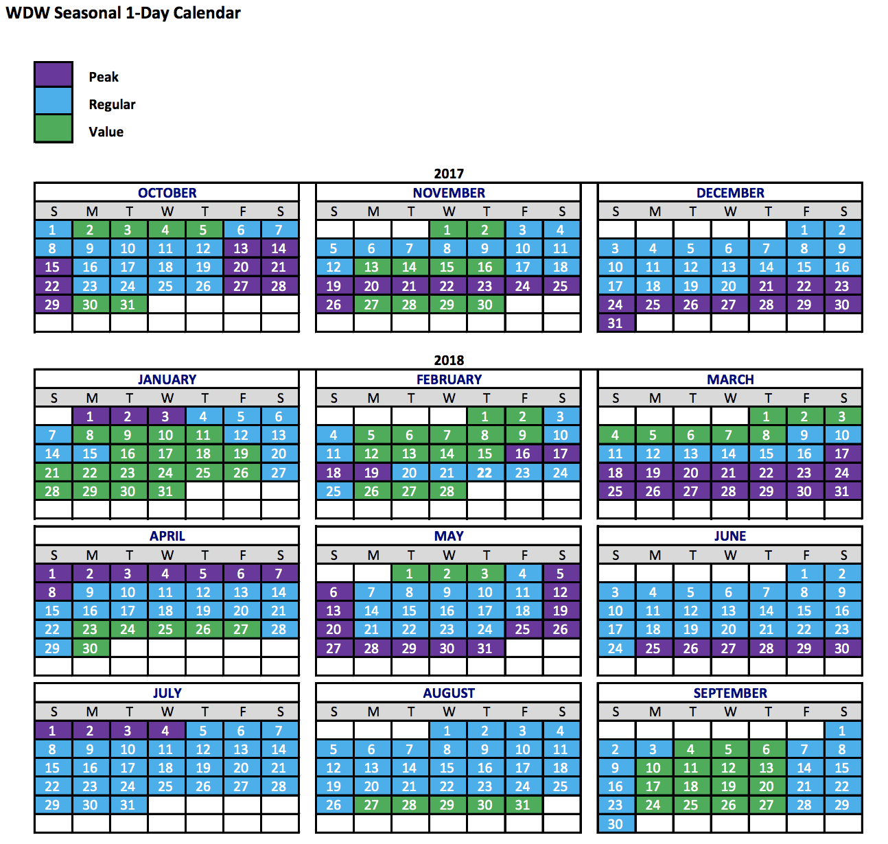 | New Non-Magic Kingdom Price– Value Days | New Non-Magic Kingdom Price– Regular Days | New Non-Magic Kingdom Price– Peak Days | Previous Price | |