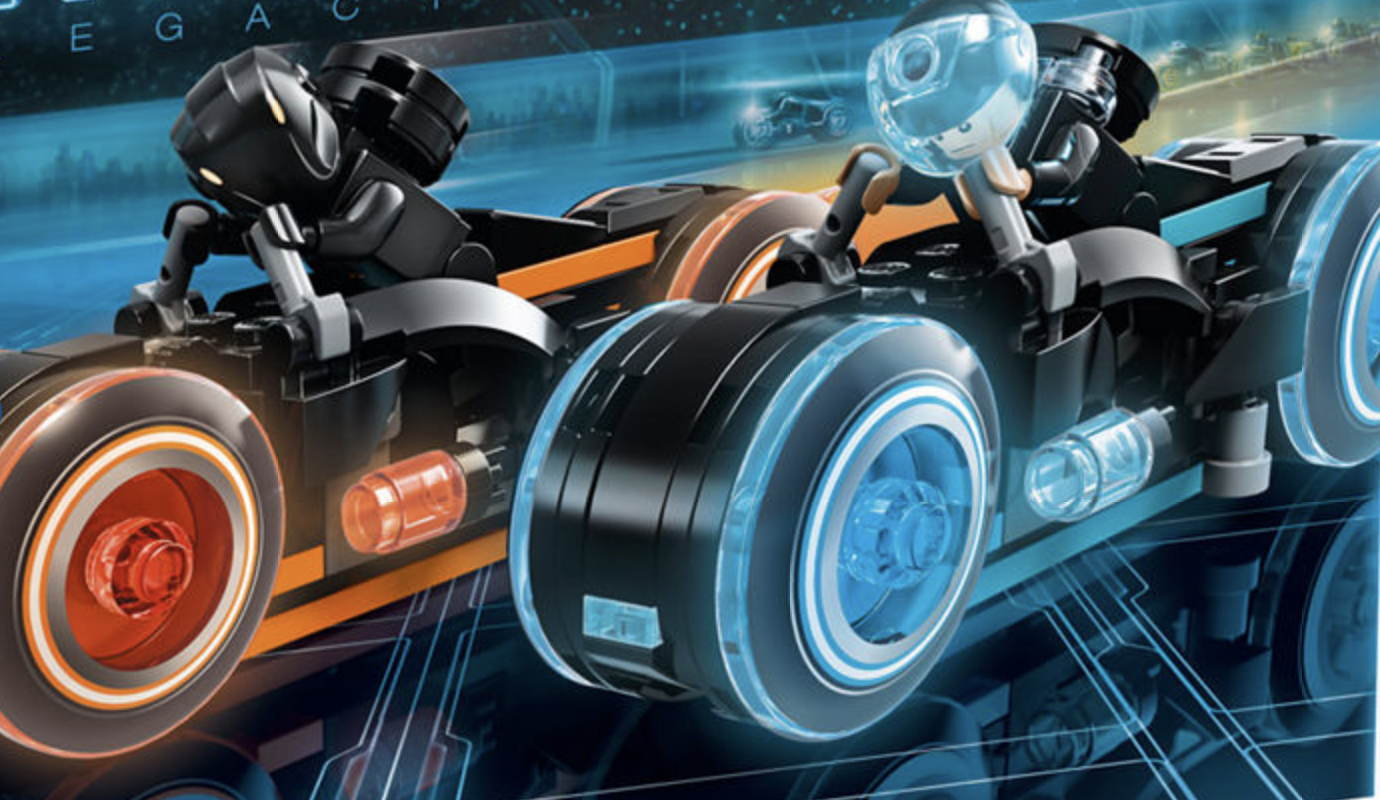 Popular toy maker LEGO, has just introduced the latest addition to their builders sets. Designed after Tron: Legacy, the new set is based on the thrilling Light Cycle race sequence from the film. The collection features the orange and blue cycles, along with three minifigures, and light discs so builders can perfectly recreate the heart racing moment. The set is currently just for preview and will be available for purchase on March 31st. Tron: Legacy is a sequel to the groundbreaking 1982 film Tron.