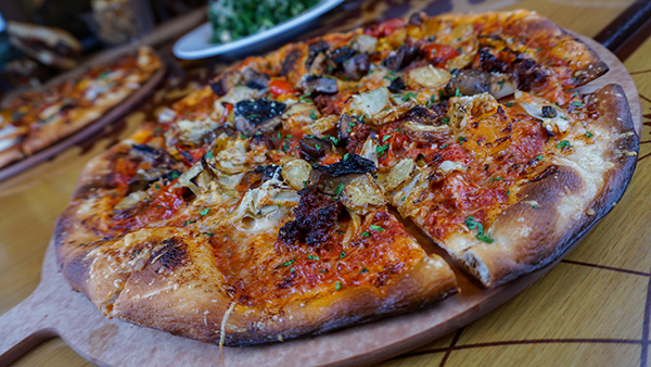 ‘Nduja Sausage Pizza— ‘Nduja sausage, mushrooms, artichokes, and potatoes.