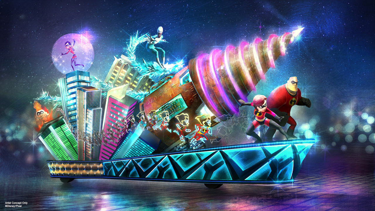 Disneyland Resort is well into its first-ever Pixar Fest and things are about to get even better. In less than two weeks, Disney California Adventure's Paint the Night Parade will debut a new float starring the Incredibles. Recently, we learned a few more details about this super addition to the popular parade.