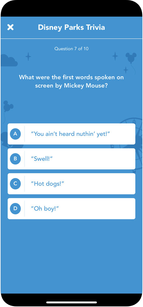 Thomas Smith on unique app features: "Guests can also earn and share digital collectibles when they receive themed achievements, earned for experiences both in the app and across the Disney parks. And with the Disney trivia feature, family and friends can band together to see if they have what it takes to become Disney trivia masters as they discover fun facts about their favorite theme parks."