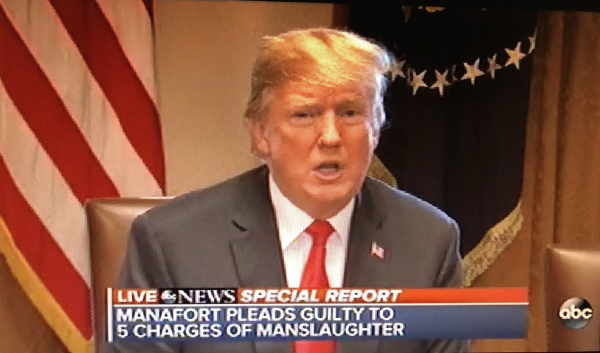 Paul Manafort was President Trump's campaign manager for a period. As a result of Special Prosecutor Muller's investigation he has been charged with crimes, but nothing even close to manslaughter. In addition, Manafort has not pleaded guilty to any crime