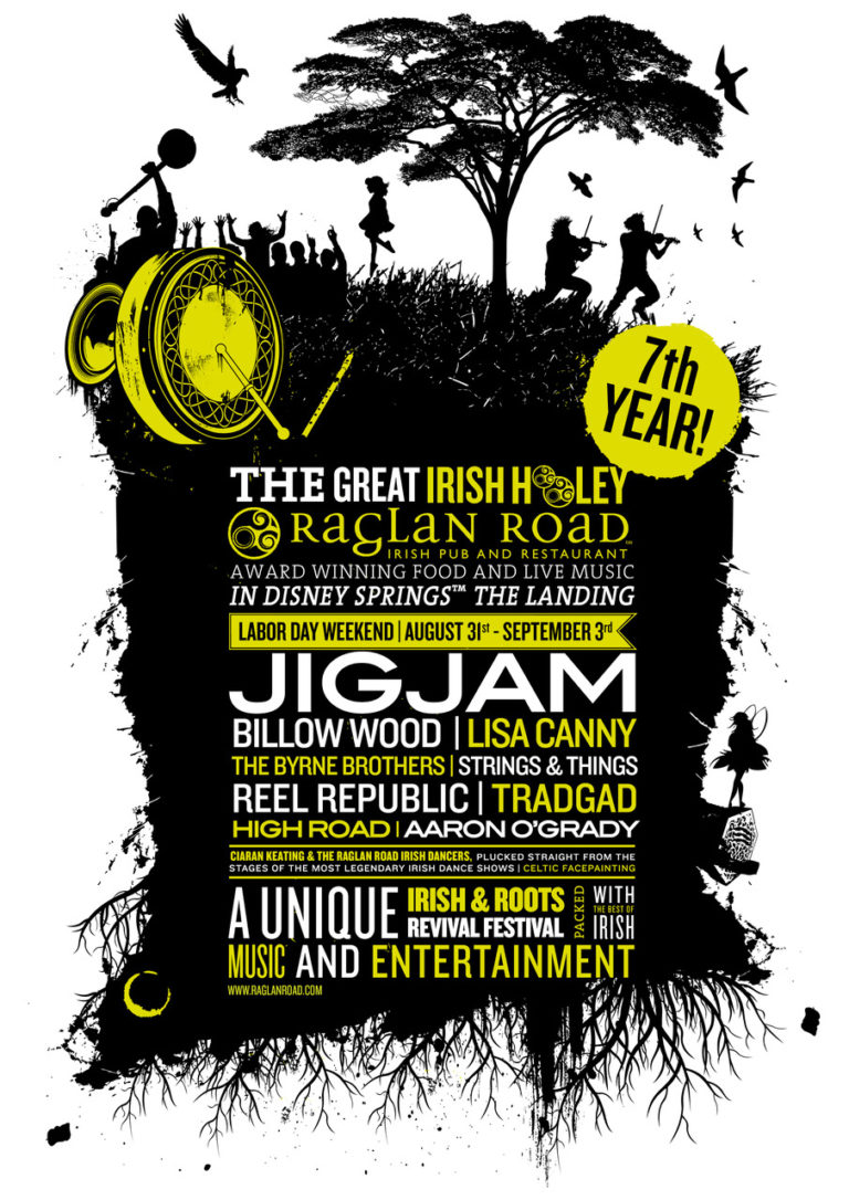 - "Central Florida’s high-voltage boutique Irish music festival serves up a colorful live playlist of traditional Irish, Celt grass, folk, blues and soul during the 7th Great Irish Hooley at Raglan Road Irish Pub & Restaurant at Disney Springs."