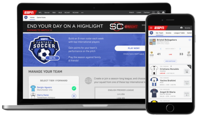 - Fantasy Soccer Content and Decision-Making Tools – ESPN Fantasy Soccer provides unprecedented levels of content and in-game data to help fans make informed picks each week. These include proprietary fantasy score projections developed by ESPN’s Stats and Information Group, weekly player outlooks and injury reports, up-to-the-minute information on which players are likely to start each match, and extensive news and analysis specifically tailored to ESPN Fantasy Soccer.