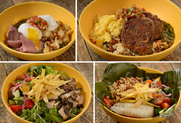 - Island Bowl – customizable with choice of base, protein, sauce, and for breakfast bowls, choice of egg (scrambled, poached, or tofu scramble).