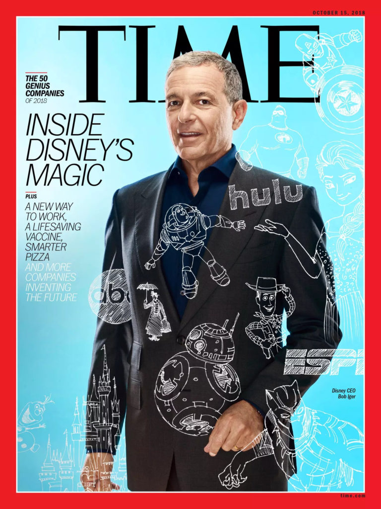 Time Magazine has a feature on Disney's Chairman and CEO Bob Iger which focuses on his performance and ability to manage creative talent. Perhaps the most interesting paragraph is on the acquisition of 21st Century Fox: