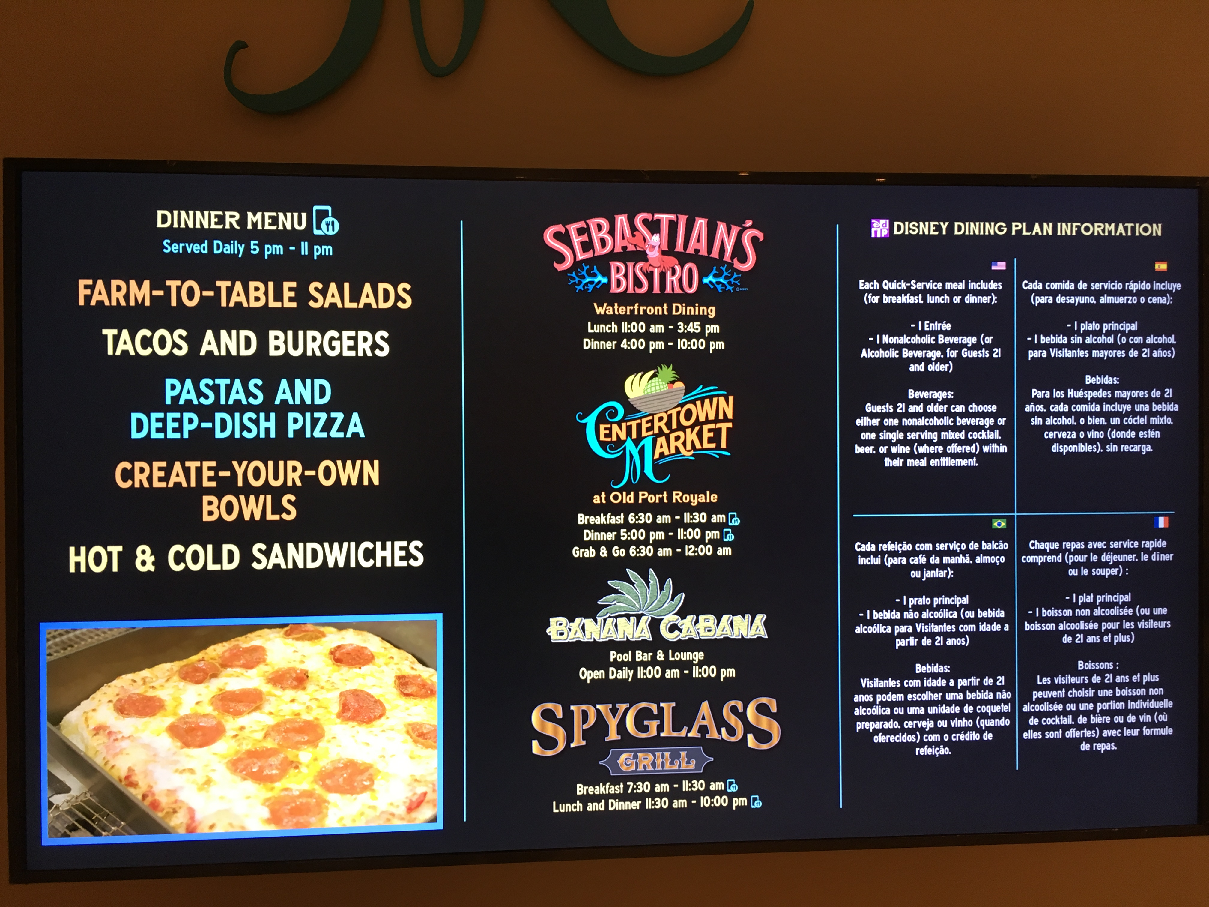 - Sebastian's Bistro - A Caribbean-inspired table-service restaurant serving up all of your favorite surf and turf meals with Latin and Caribbean flavors. Sebastian's Bistro is open for Lunch and Dinner. Check out the menu here.