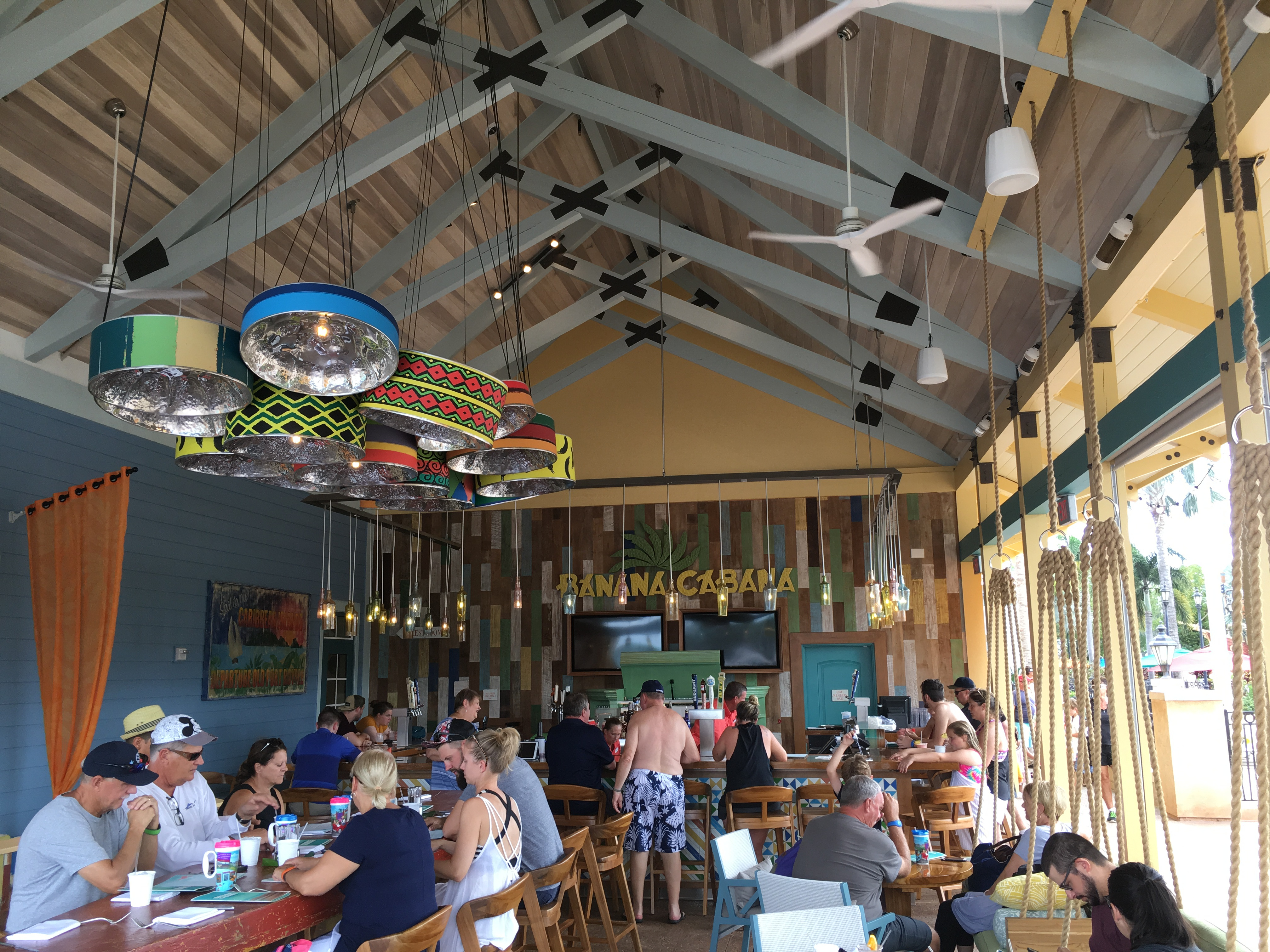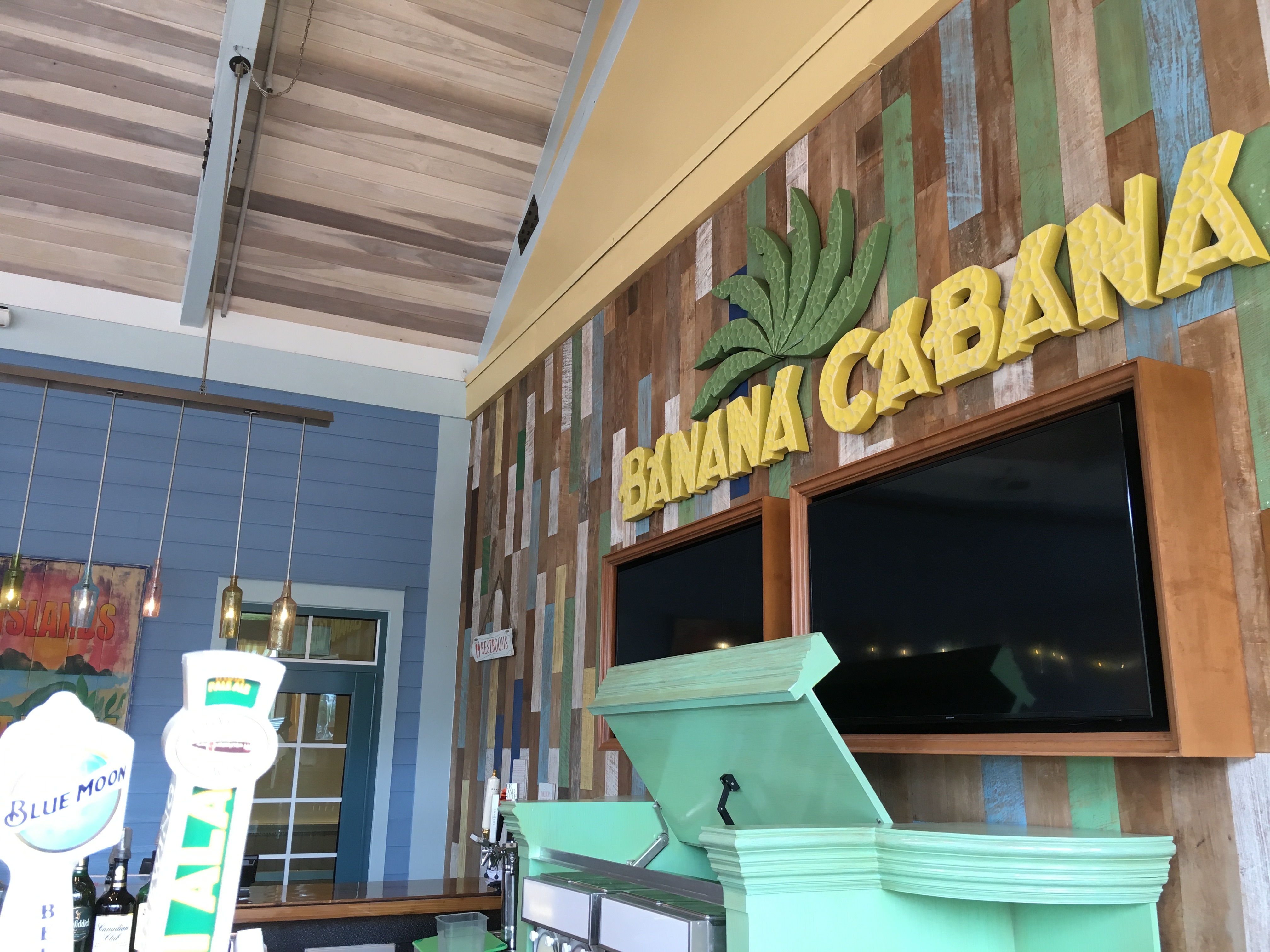 - Banana Cabana - Now for the really good stuff. Banana Cabana is a new poolside bar with a tropical feel, relaxing ambience and specialty drinks that will transport you to your favorite island. Banana Cabana is open from 11 AM to 11 PM. Check out the menu here.