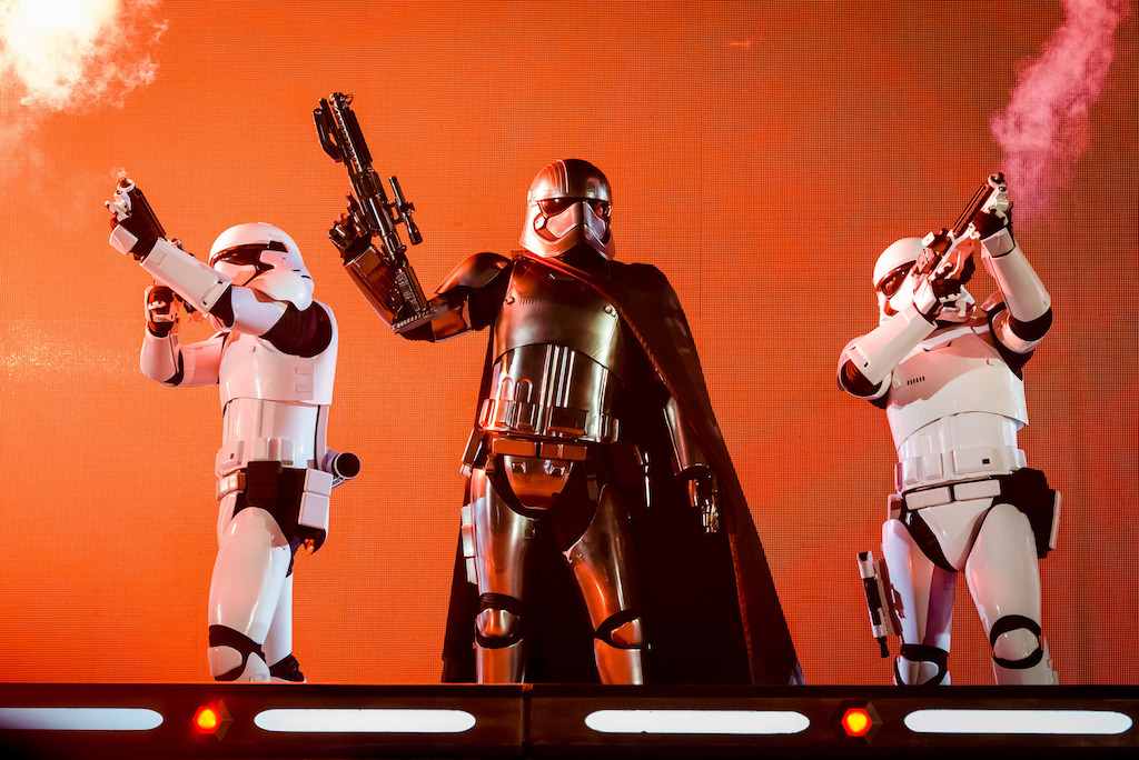 - Walt Disney Studios Park will offer an extraordinary sound and light show with projections, special effects and of course characters from the Star Wars saga. The days will also be punctuated by the First Order March of stormtroopers, led by the daunting Captain Phasma.