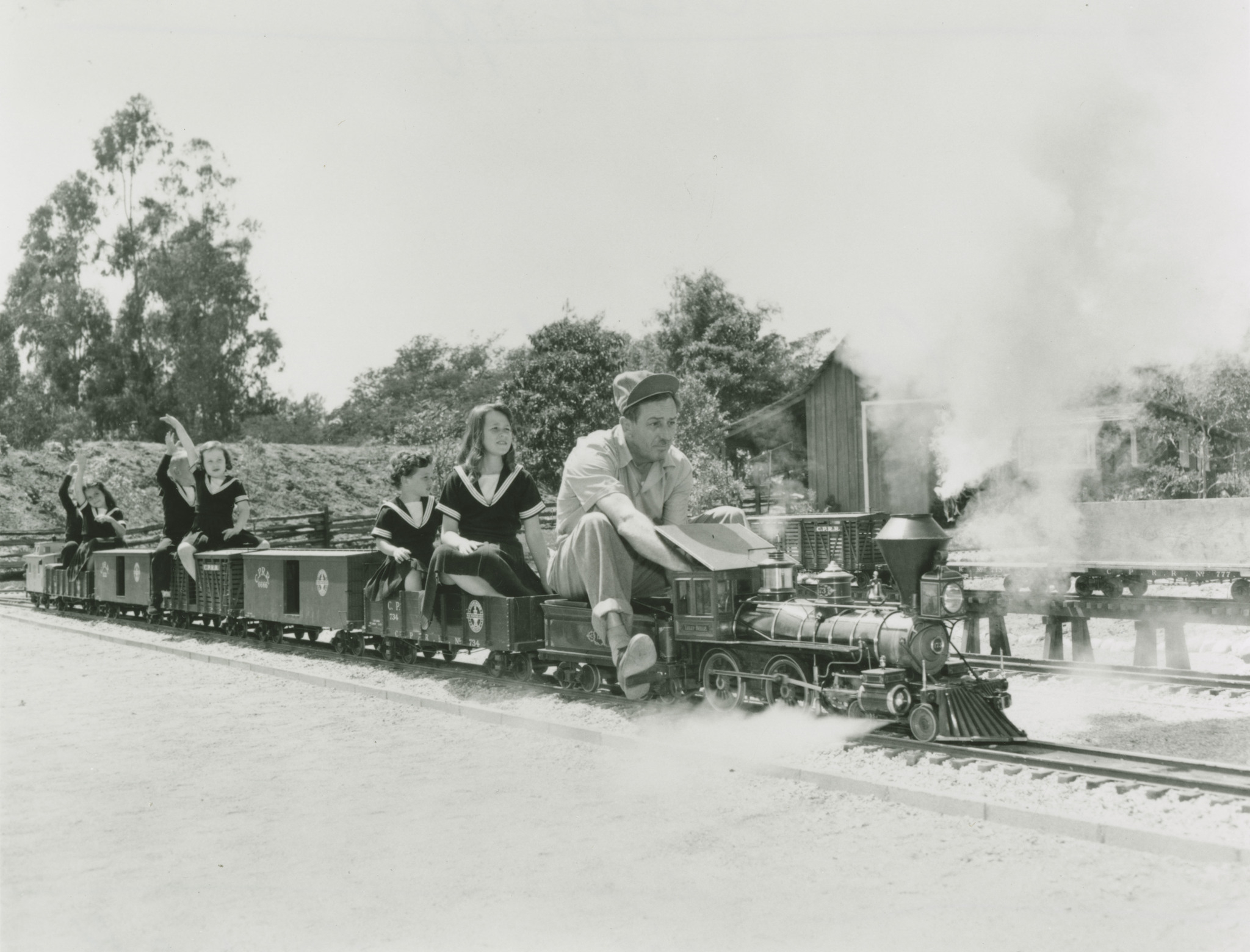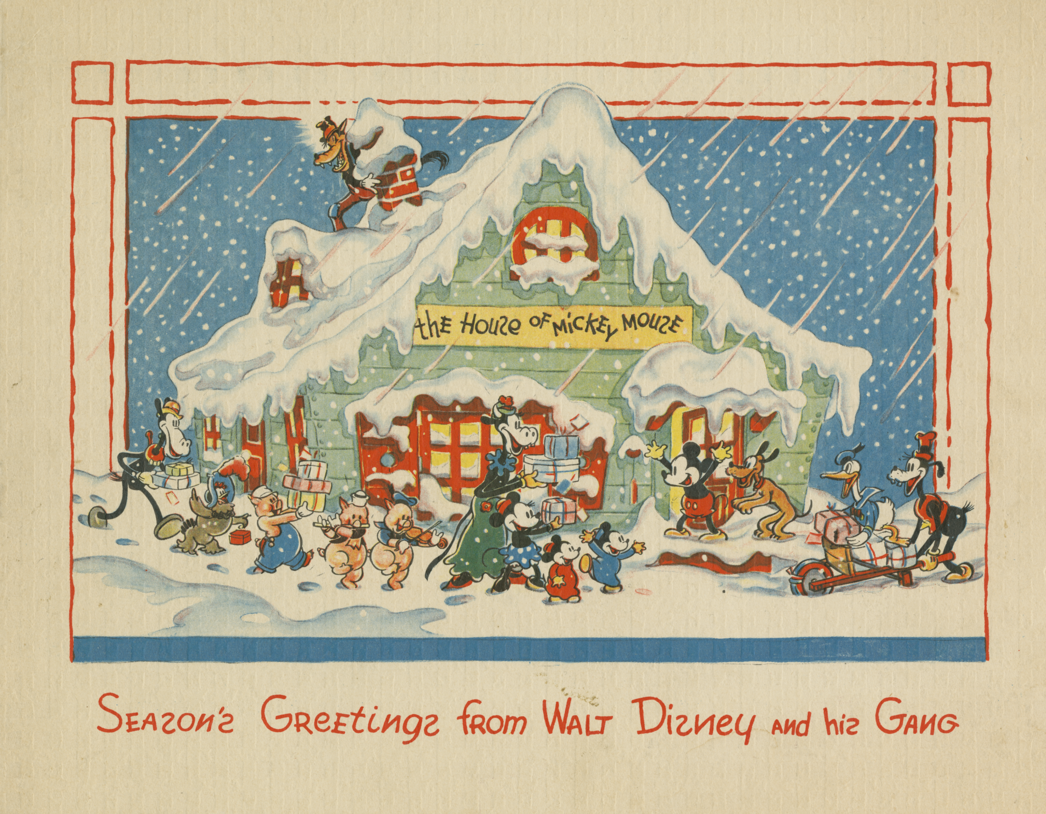 - An elaborate, three-dimensional model of the Disney family home, which once stood on Carolwood Drive in the Holmby Hills section of Los Angeles, will be the most prominent element of the exhibition, and will even feature a miniature version of Walt’s steam locomotive, the Lilly Belle, traveling around his Carolwood Pacific Fair Weather Route—a half-mile track that crisscrossed the home’s lawn and flowerbeds. Decorated with seasonal lights and greenery, this colorful and intricate scale model will be ceremoniously illuminated for the first time on Walt’s birthday, Wednesday, December 5, which coincides with the museum’s next free admission day.To further enhance visitors’ holiday experience, our major special exhibition, Walt Disney’s Nine Old Men: Masters of Animation, will be spreading some cheer as well: an array of never-before-seen holiday cards that were created by many of the titular Nine Old Men—a cast of influential animators who worked directly with Walt—will be displayed in Masters of Animation for the last few months of its run.These cards will complement the personal snapshots that depict Walt and his family, as well as the animation art and ephemera, that fill Home for the Holidays at Carolwood. And, for the first time, visitors can get an up-close-and-personal look at a vintage sled, which features an original, painted design of the “pie-eyed” version of Mickey Mouse.