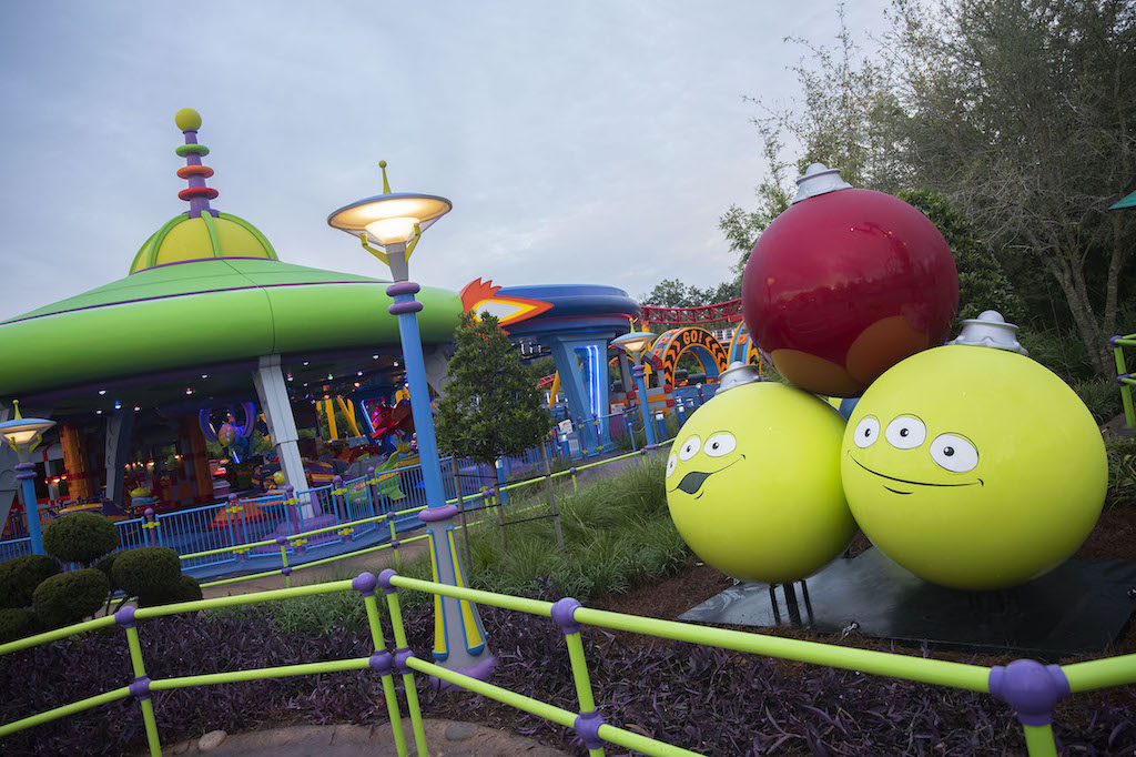 - Listen for sleigh bells ringing on Slinky Dog Dash, two new holiday songs playing on Alien Swirling Saucers as well as colorful themed lighting.