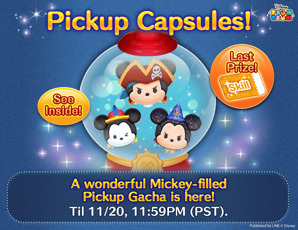 - A special, limited-edition pick up capsule will be available for a short-time, containing Pirate Mickey, Fantasmic Mickey, Conductor Mickey, Sorcerer Mickey and Musketeer Mickey.