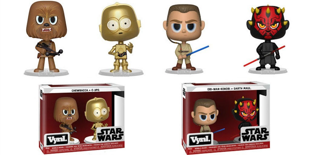 Funko Vynl. figures are super special because they always come in twos. The latest group of characters to join this funs series of collectables come from the Star Wars universe and include: Obi-Wan Kenobi, Darth Maul, Chewbacca, and C-3PO. Both sets will make their debut early next year and are currently available for pre-order.