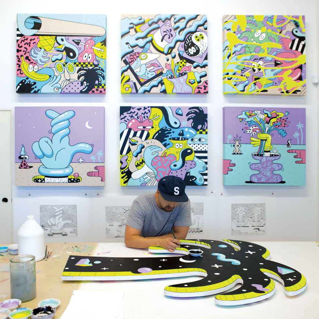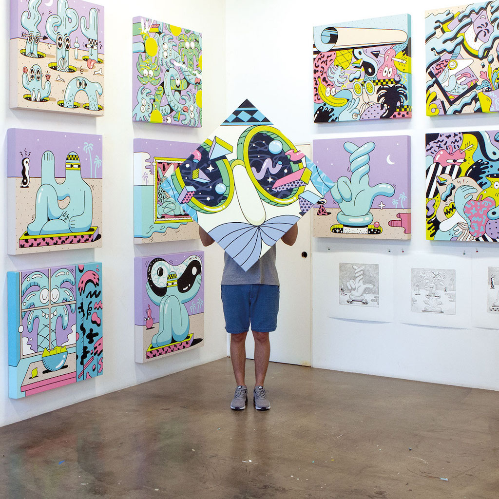 - Focusing on the lighter side, Steven Harrington brings his wacky kaleidoscope creations to this legendary icon’s birthday. The LA based artist, cited as the leader of the contemporary Californian psychedelic-pop aesthetic, says that his bold, cartoonish style encourages a two-way conversation between artist and viewer.