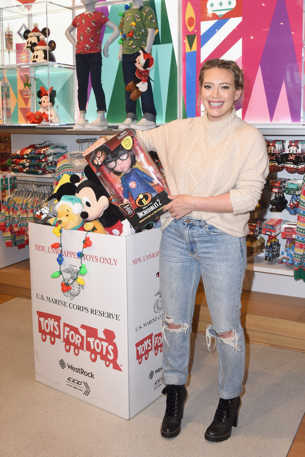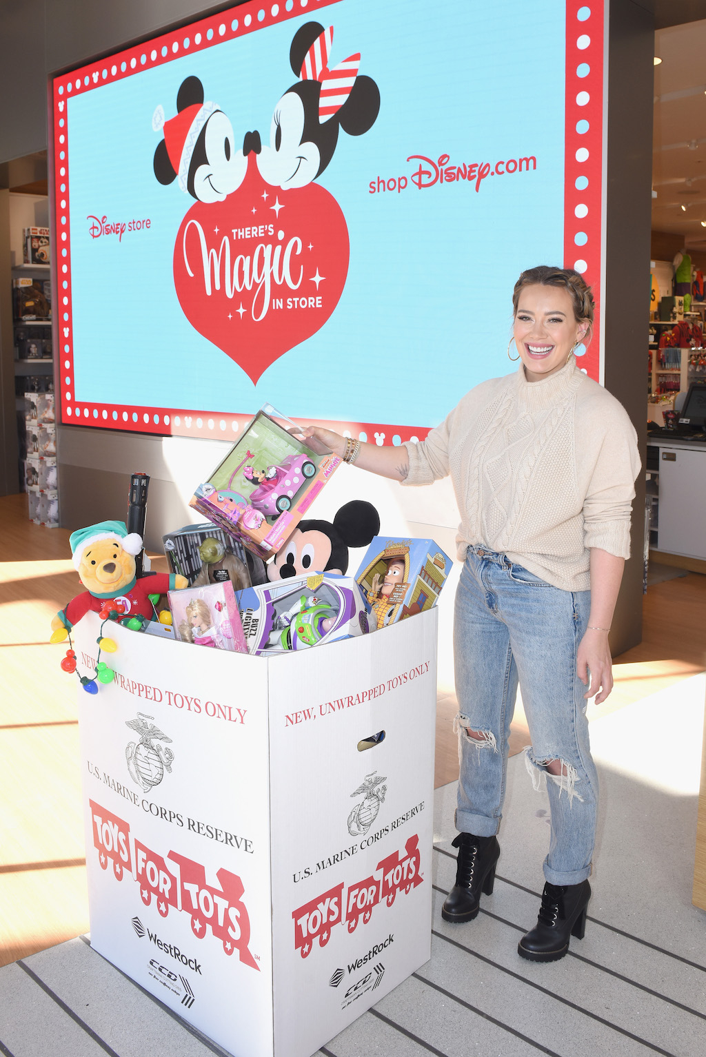 - Actress Hilary Duff and the Toys for Tots Marines stopped by the Disney store in Century City, CA to kick off the holiday campaign.