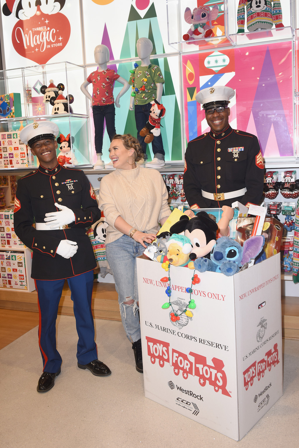 Hilary Duff, U.S. Marines Kick Off Toys for Tots Holiday Campaign at the Disney Store