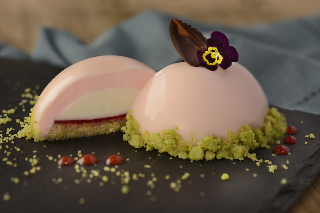 - Spuma al Miele d’Arancio: Orange Honey Mousse with Peaches and Mint Marjoram Cream