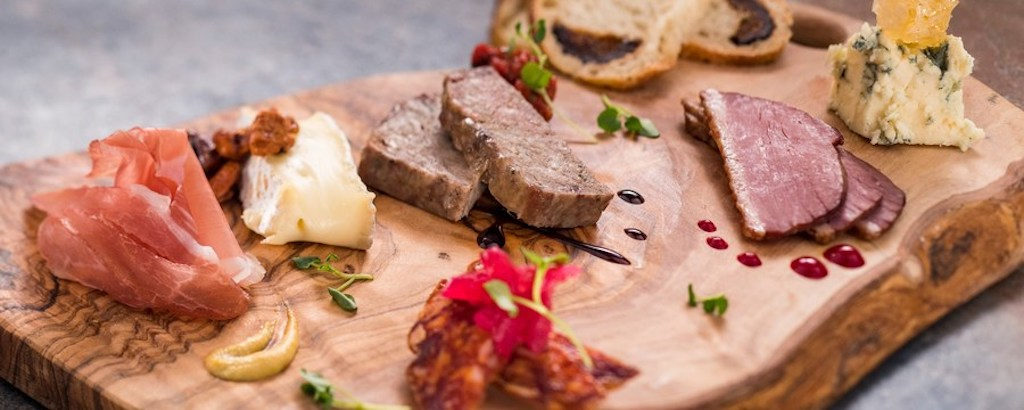 - Spiced Beef with Pine Nuts and Dried Cherries, Hummus and Pita Chips