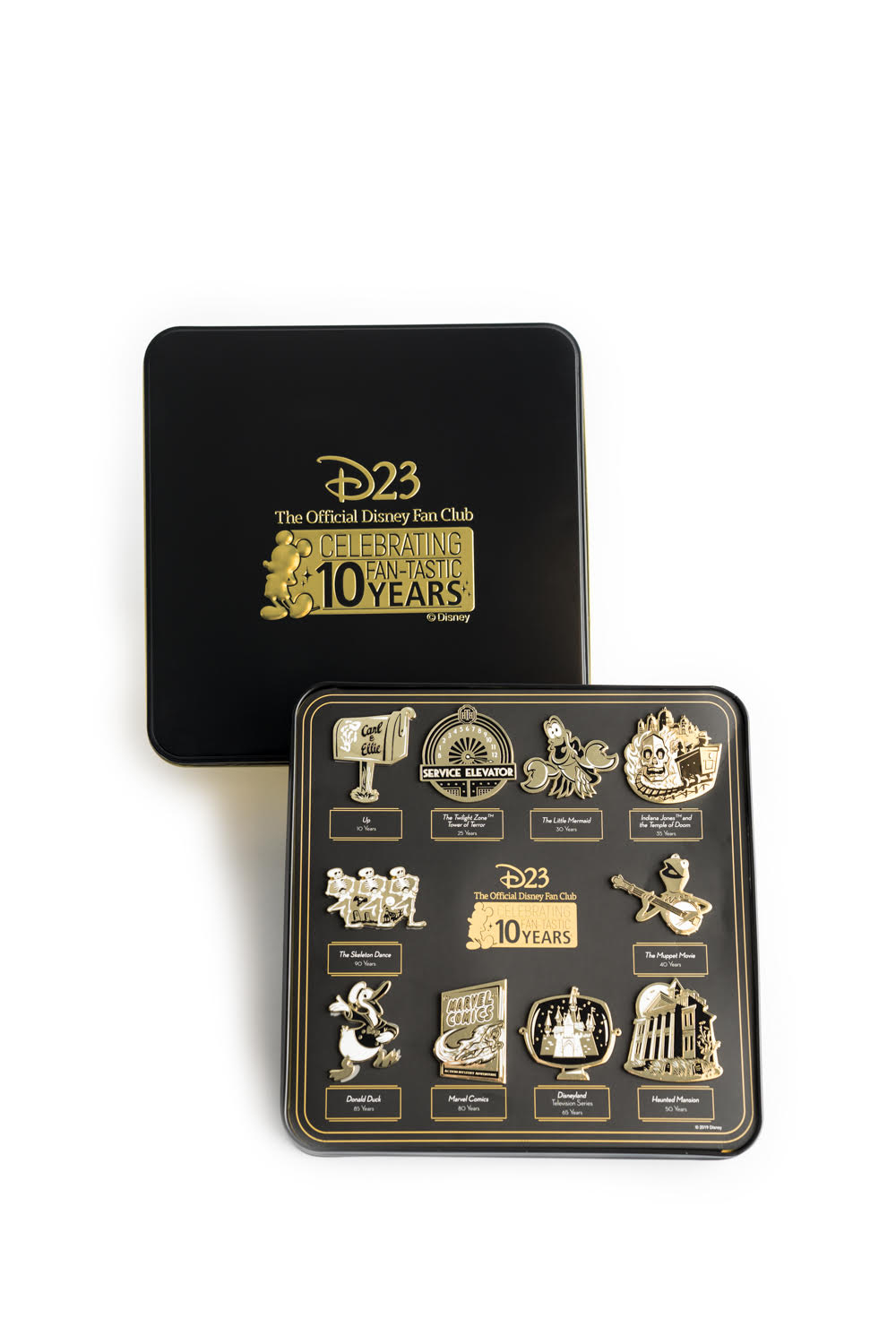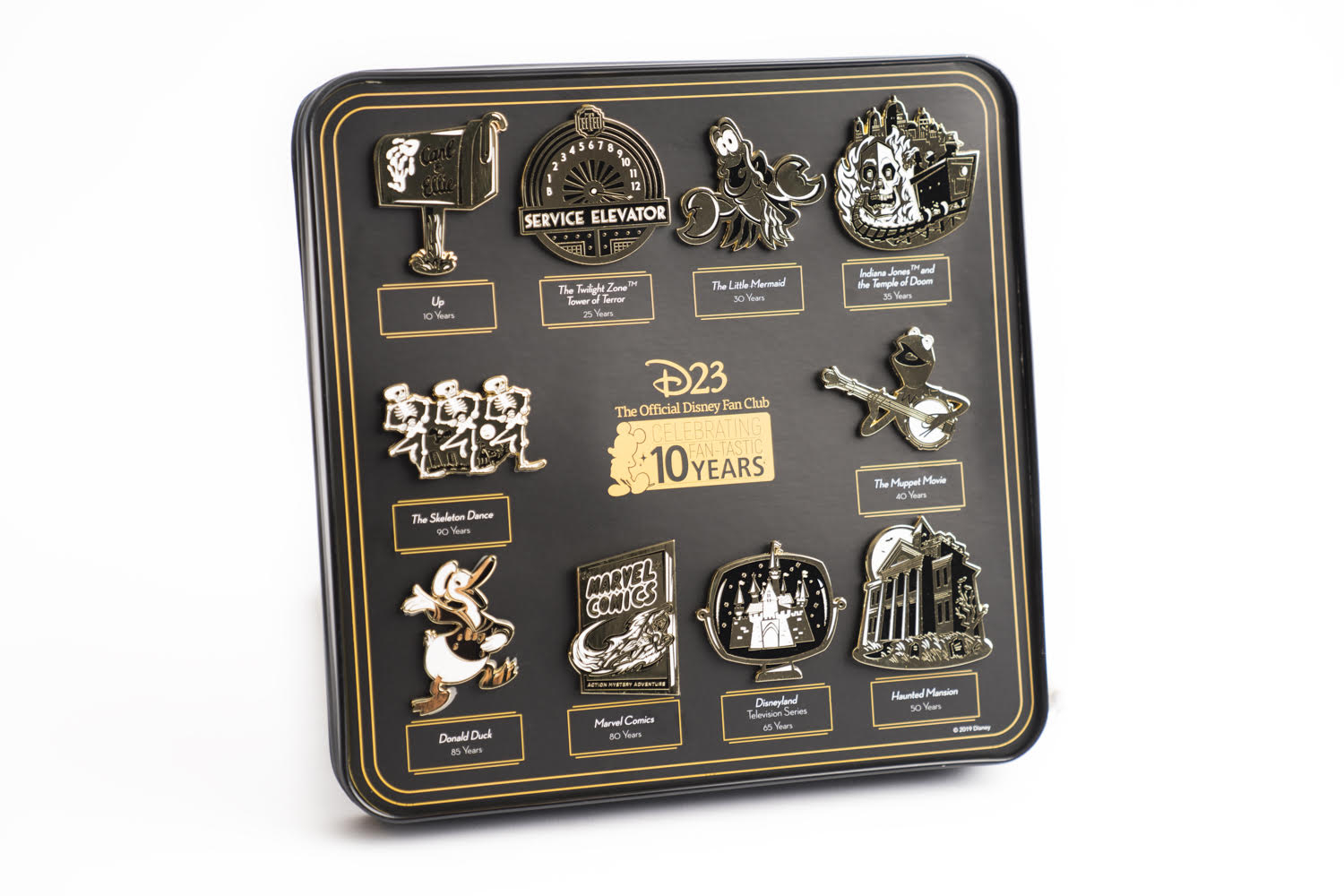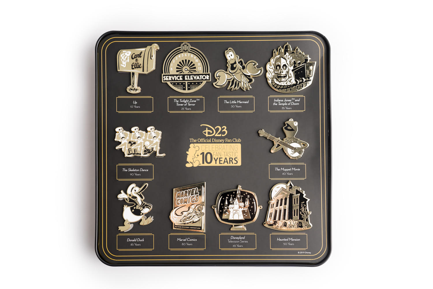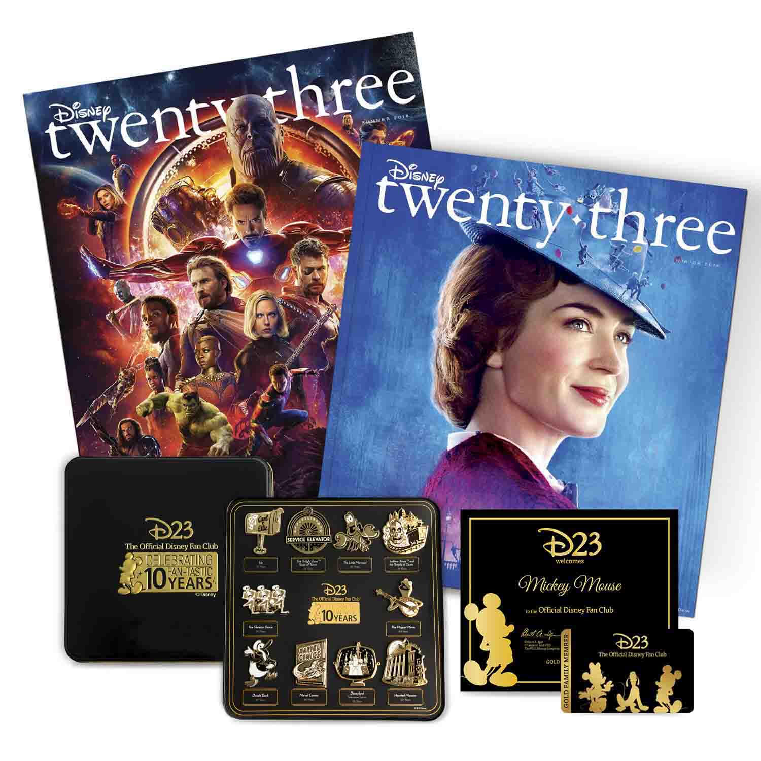 - In honor of D23’s 10th anniversary, the 2019 Gold Member Gift honors characters, movies, television shows, and theme park attractions that are also celebrating landmark anniversaries in 2019.