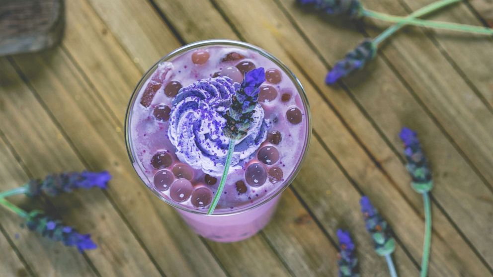 - Lavender Milk Tea - Available at Red Rose Taverne in Disneyland Park.