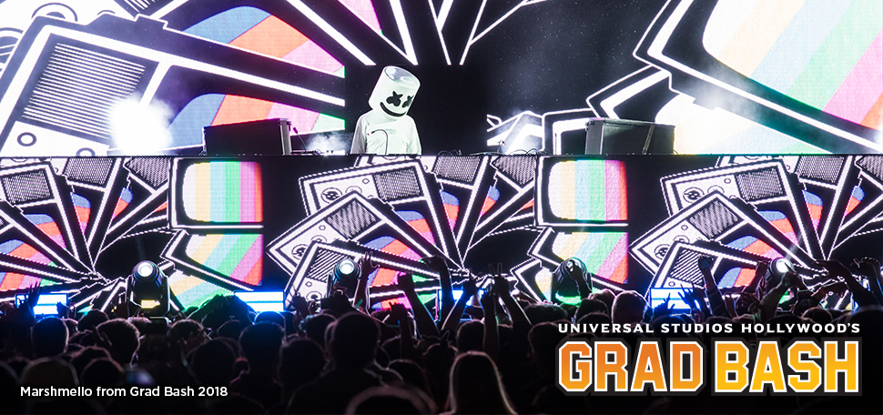 - Universal Studios Hollywood’s annual Grad Bash celebration rolls out the red carpet for graduating seniors, inviting the Class of 2019 to party Hollywood-style on select nights during this year’s event.
