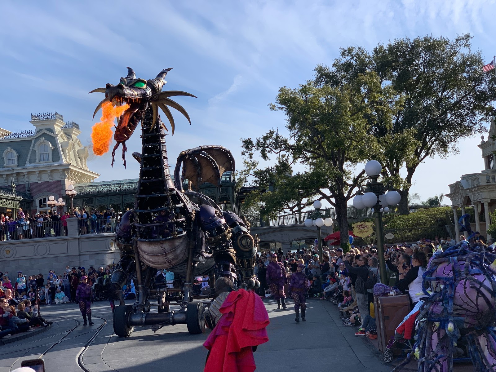 - You may recall that the fire-breathing Maleficent dragon float actually caught fire during a performance last May.