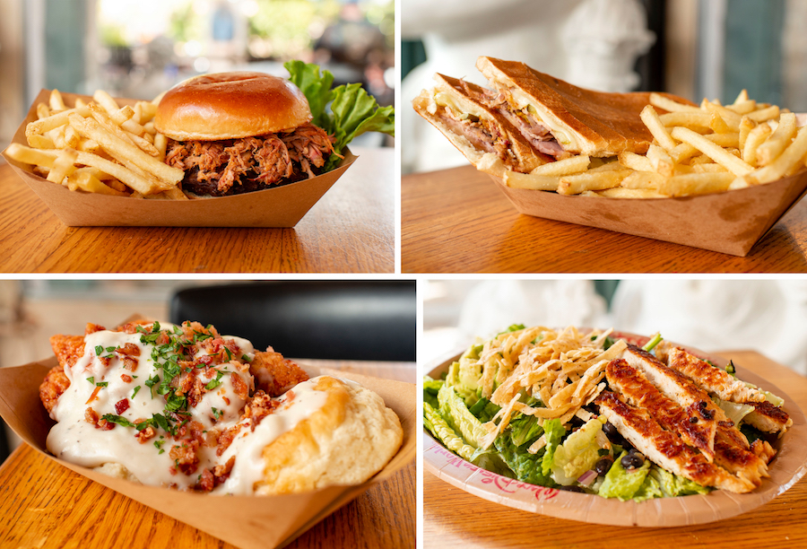 - Cuban Sandwich – Classically-pressed roasted pulled pork, sliced ham, swiss, pickles, and mustard