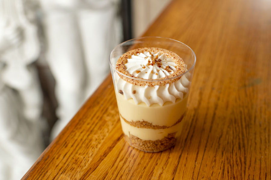 - Key Lime Verrine – Layers of key lime custard and graham cracker finished with whipped cream and white chocolate garnish