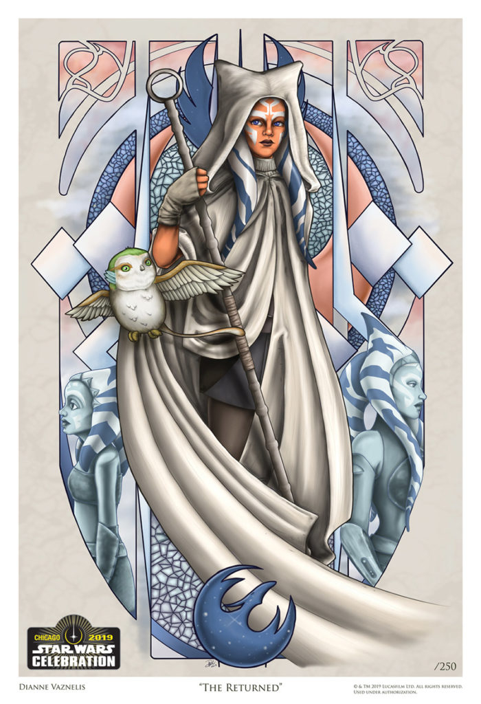- “I love the way Ahsoka’s life bridges different eras and storylines across the Star Wars universe — and she’s super fun to draw! I’m inspired by the color palette and style of art nouveau posters, and wanted to impart a little of that pastel prettiness onto Ahsoka, to highlight the grace and hope behind the powerful warrior.”