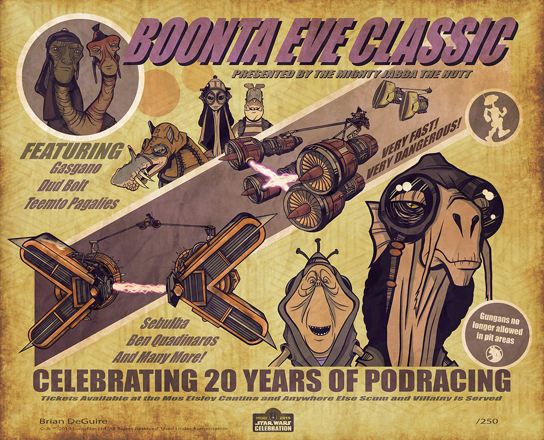 - “My piece this year was inspired by the 20th anniversary of The Phantom Menace. Twenty years ago, Star Wars movies came back into our lives with memorable scenes and new characters. I think we can all agree that one of the most iconic scenes in that movie was the Boonta Eve Podrace. I knew I couldn’t miss the chance to draw some of the great alien characters in that scene.”