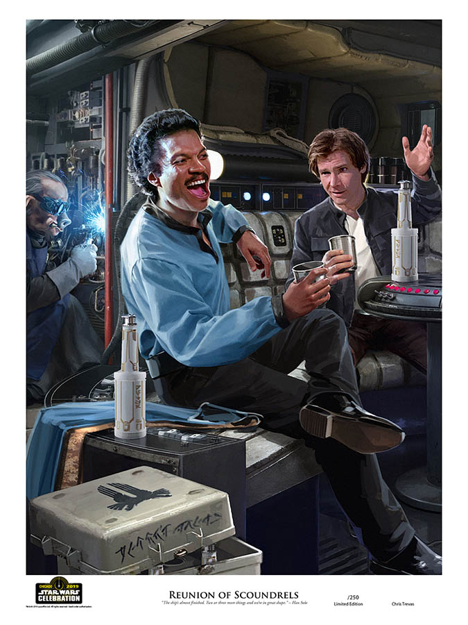 - “Continuing my series of unseen scenes from the classic trilogy, I really wanted to tie-in to Solo: A Star Wars Story and the relationship between Lando and Han. They’re reminiscing about old times and catching up during the repairs on Cloud City (while also dipping into Lando’s reserves from the old wet bar that Han had stashed away). Seeing them together like this makes Lando’s betrayal sting a little more but also their history is why Lando comes through in the end when the deal with the Empire gets worse.”
