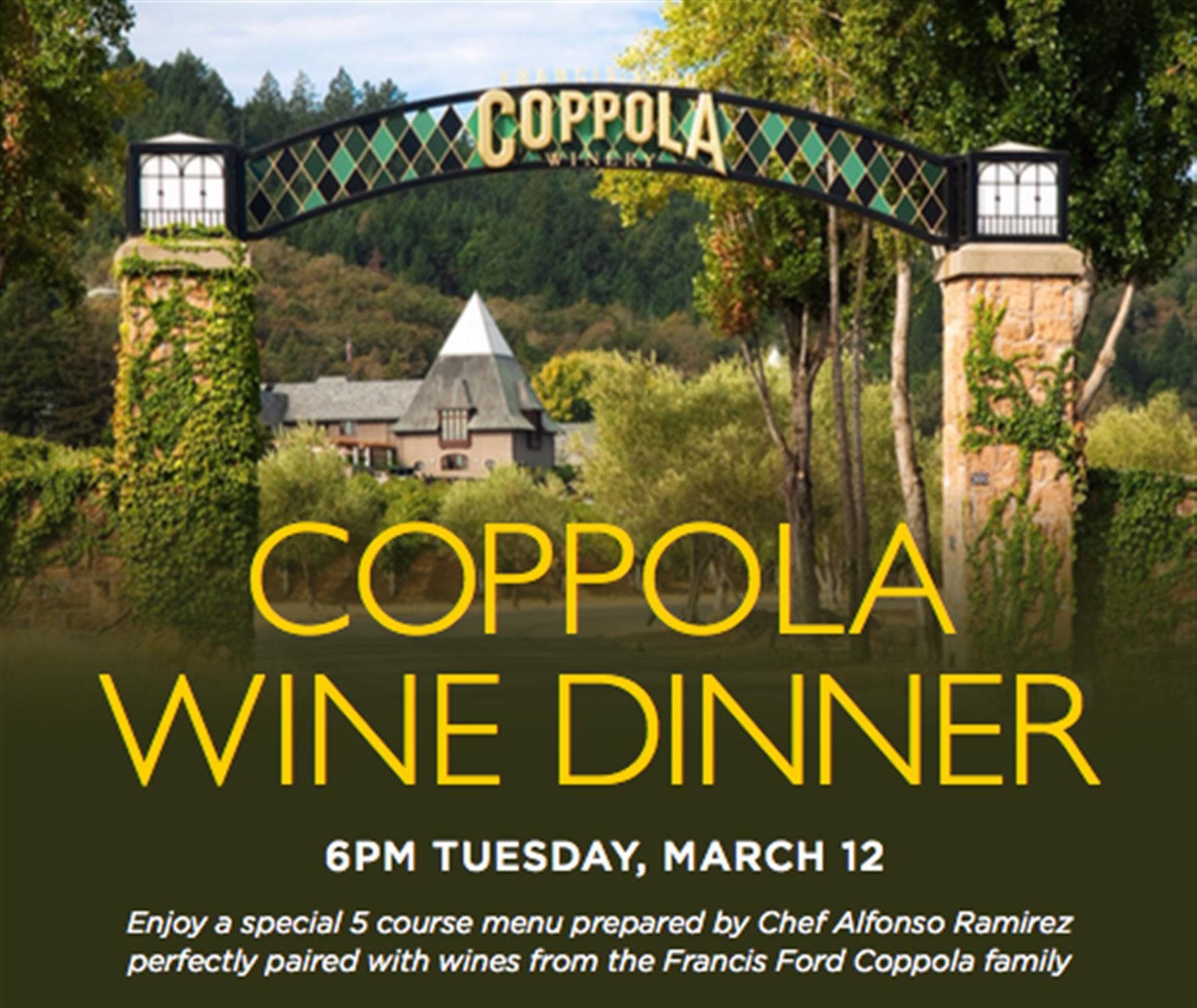 - Catal Restaurant in Downtown Disney District and Francis Ford Coppola Winery have teamed up to host the ultimate wine pairing dinner on Tuesday, March 12th at 6 pm.