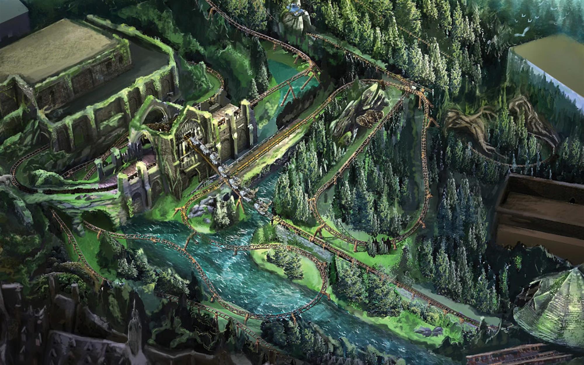 - The attraction will feature rich environments and sets including a forest of 1,200 live trees.