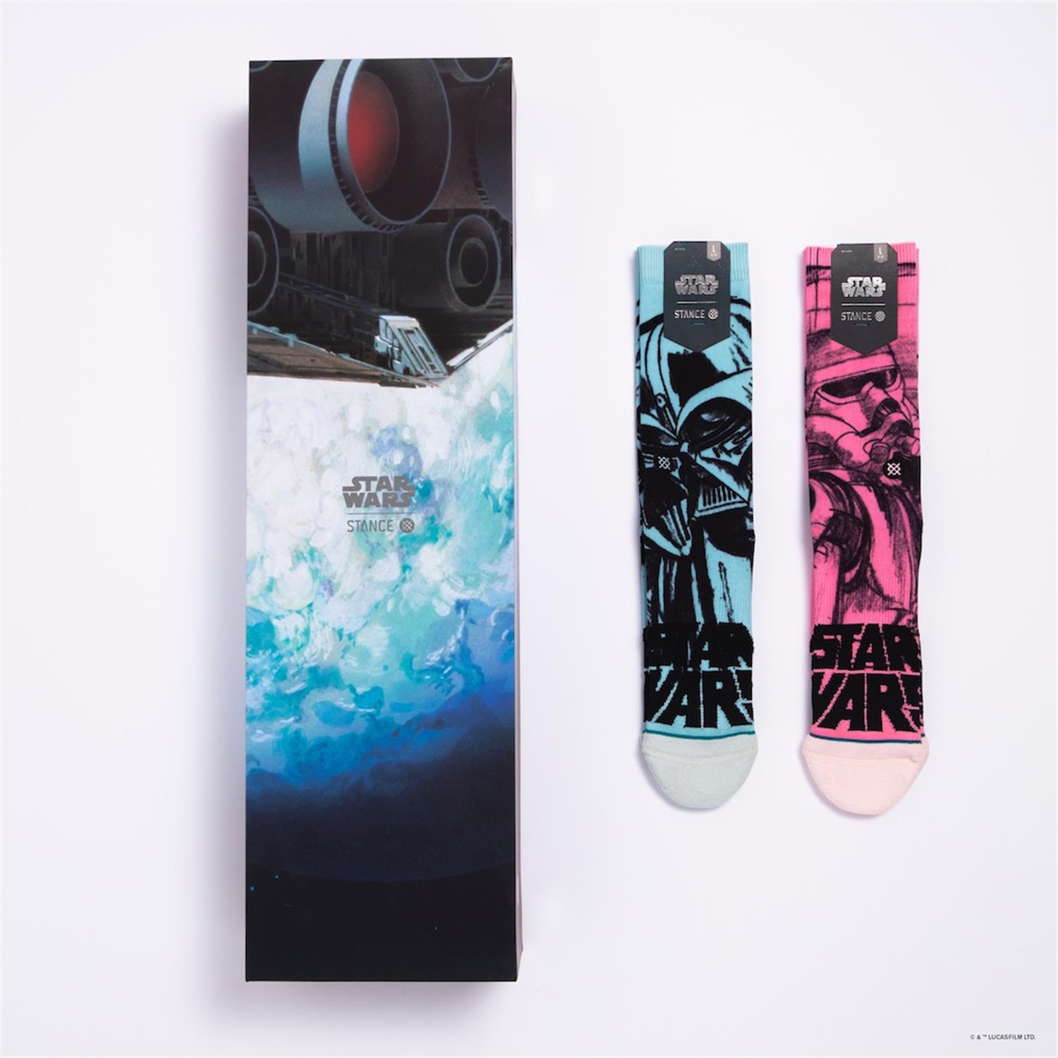 - The socks and poster come packaged in a soft-touch magnetic clasp box which is also adorned with Star Wars concept artwork.