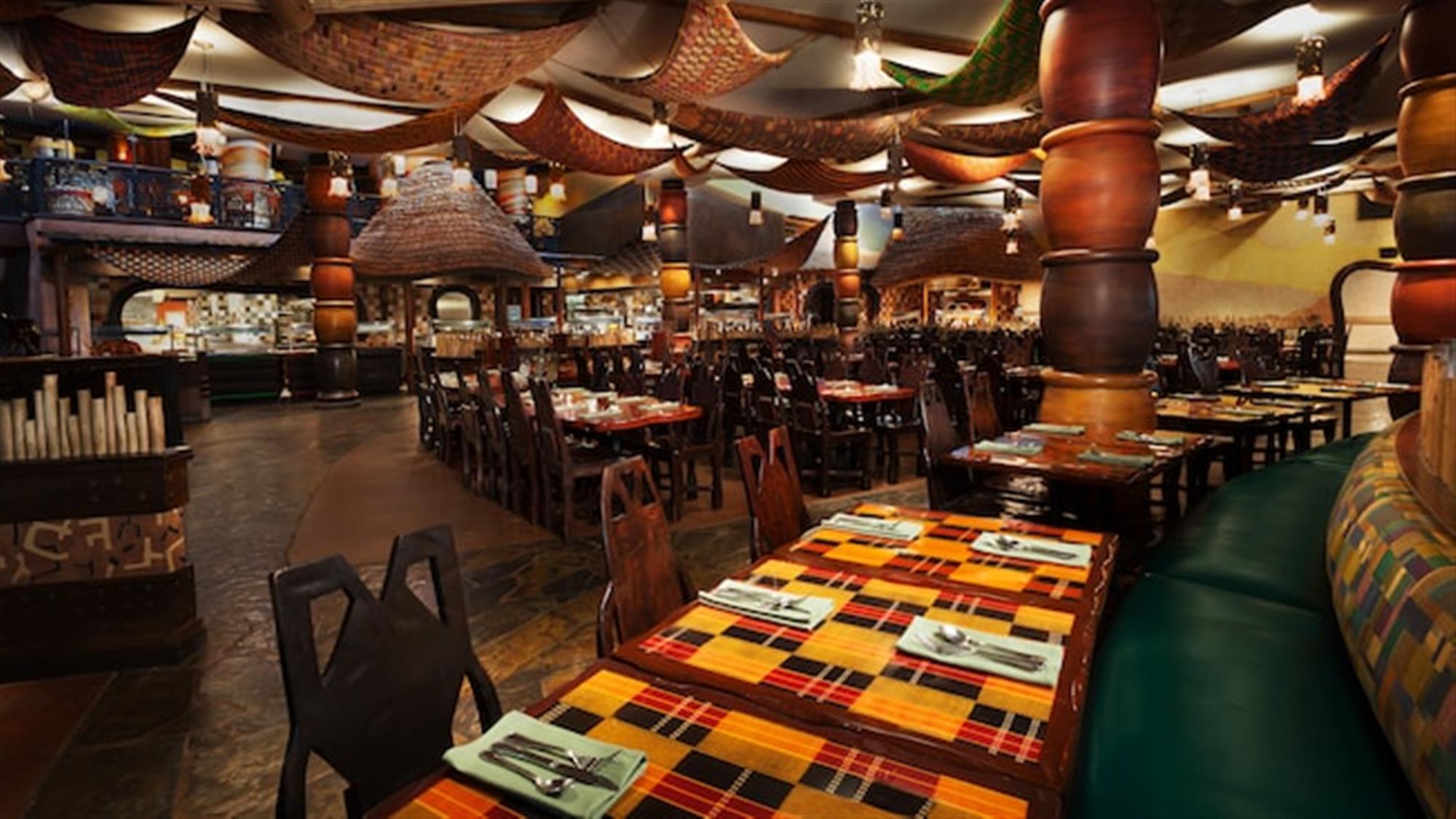 - Boma – Flavors of Africa at Disney’s Animal Kingdom Lodge offers traditional African choices such as Cape Malay Lamb Stew or Couscous alongside American favorites.