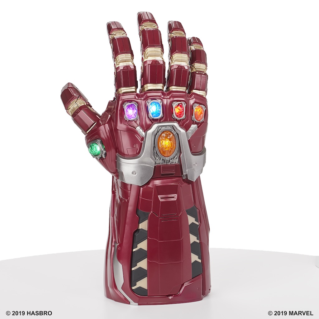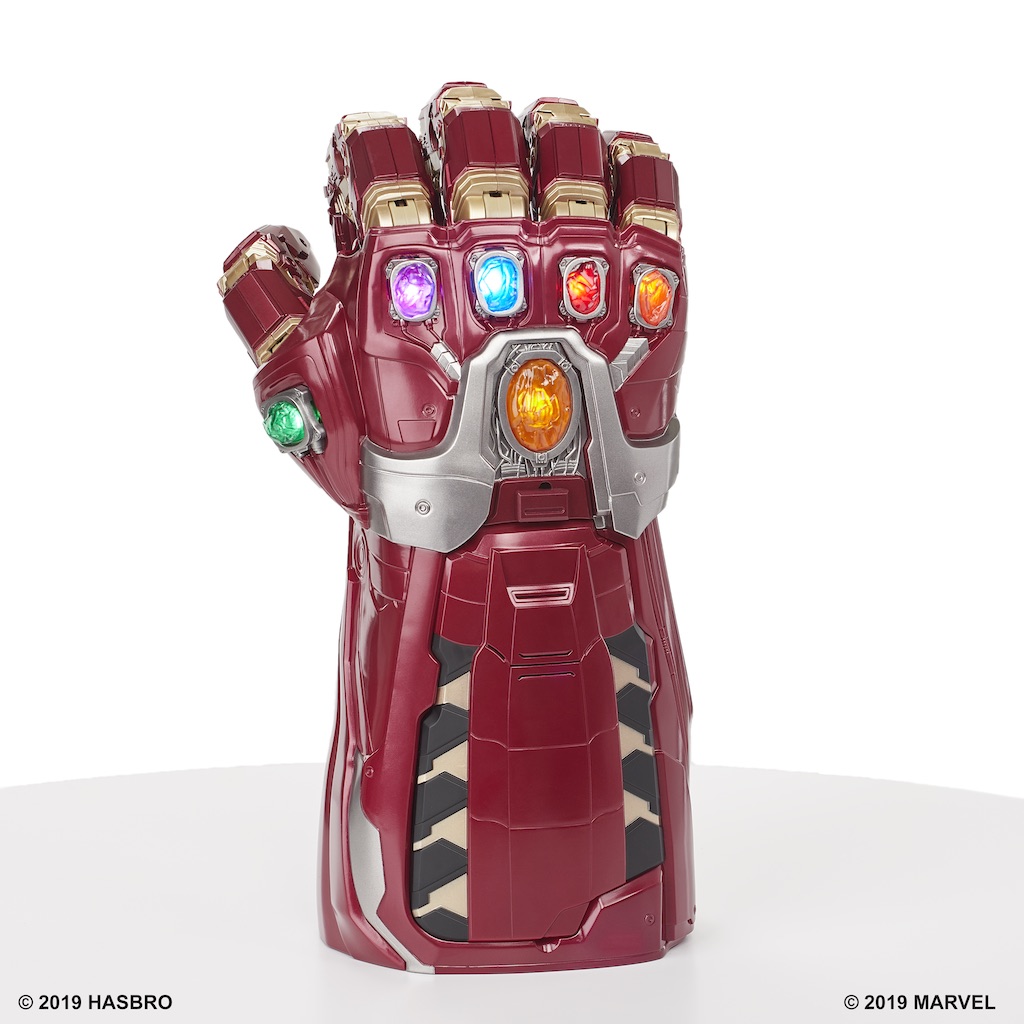 - When activated, the Power Gauntlet’s 6 infinity Stones pulsate with glowing light. Pushing the Infinity Stone at the center of the Power Gauntlet activates sound effects inspired by Avengers: Endgame.