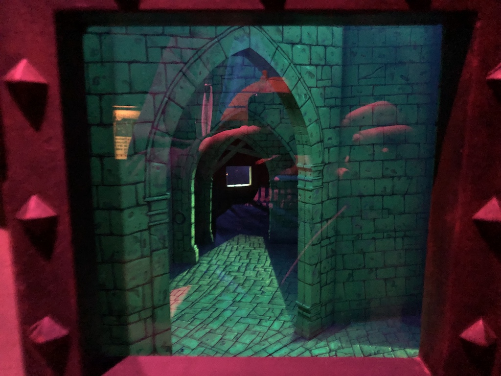 - The castle features darker paint on the bottom that gradually lightens toward the top, enhancing the forced perspective effect.