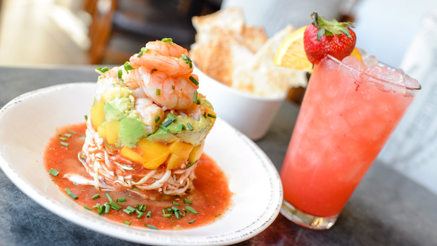 - Key West Shrimp Cocktail – Seasoned shrimp hand tossed with avocado, mango, cucumber, and house-made cocktail sauce and served with buttermilk crackers
