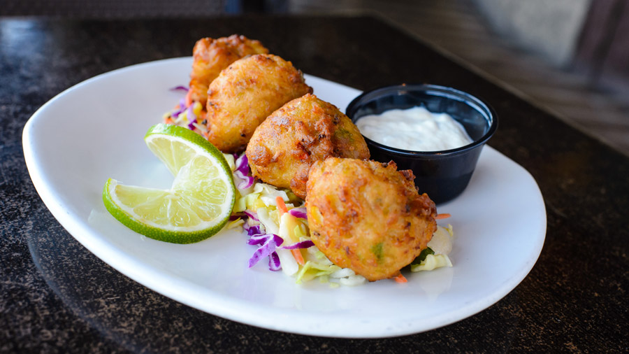 - Conch Fritters – Conch fritters served on a bed of tropical slaw with Key lime tartar sauce